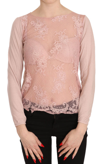 PINK MEMORIES Pink Lace See Through Long Sleeve Blouse