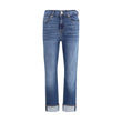 The Relaxed Skinny Jeans by 7 For All Mankind blend comfort and sophistication in a mid-rise, slim yet relaxed silhouette. Crafted from blue Slim Illusion denim, they embrace the figure with lightness and ease, making them perfect for everyday wear. The cuffed hem adds a contemporary, versatile touch, while premium fabrics highlight the brand’s refined identity. Pair with a matching denim jacket for a bold total look or elevate the style with heels for a feminine twist.