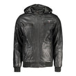 LONG-SLEEVED ECO LEATHER JACKET, WITH REMOVABLE HOOD, 2 POCKETS, 2 EXTERNAL POCKETS, 1 INTERNAL POCKET, ZIP, APPLIQUE, LOGO