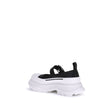 The Ballerinas are made of a mix of leather and rubber, and are distinguished by an embossed logo on the side. They feature an adjustable instep strap for a perfect fit, a reinforced toe for added durability, and a logoed pull on the heel for easy donning. The logo is also embossed on the inside, while the oversized sole provides a modern touch and ensures comfort.