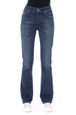 Elevate your denim collection with the exquisitely crafted jeans from Baldinini Trend, where Italian elegance meets contemporary style. These regular-fit jeans feature a signature logoed button, providing a hint of luxury with every wear. Adorned with a tricolor insert on the front pockets and classic rear pockets, they fuse traditional and modern aesthetics with effortless charm. Designed for the fashion-forward, these blue beauties offer the perfect stretch for comfort, thanks to the blend of premium cotton and elastane.