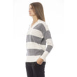 Elevate your wardrobe with the Baldinini Trend V-neck sweater, an embodiment of sophistication and style. This luxurious knit boasts long sleeves and ribbed detailing on the neck, wrists, and bottom hem, ensuring both comfort and a chic silhouette. Adorned with the distinctive Baldinini Trend monogram in sleek metal, this sweater in a versatile gray hue is crafted from a sumptuous blend of materials. Perfect for those who appreciate the finer things in life.