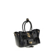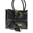 by BalenciagaBalenciaga’s Bel Air mini Shoulder Bag is made of calfskin leather with crocodile processing, combining sophistication and iconic design. The carry-all model features two handles joined by a clip and an adjustable, removable shoulder strap, so it can be carried on the shoulder, over the shoulder or by hand. The back features the embossed Balenciaga Paris logo with lamination, while the removable key ring with double spiral loop adds practicality. Antiqued gold hardware, snap buttons on the sides, and an engraved logo swivel closure complete the look. The bag offers a large front pocket, main compartment and two interior zippered pockets for functional organization.