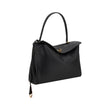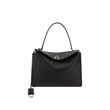 Balenciaga’s leather Rodeo Shoulder Bag features a top handle for a comfortable and stylish grip. The front closure features a flap and swivel, adding a distinctive and functional detail. Applied keychain detail on the top handle. The removable shoulder strap is attached by snap hooks, allowing it to be carried either on the shoulder or by hand. Inside, the bag offers single interior compartment, ideal for organizing essentials. In addition, there are metal feet at the base of the bag to protect it and keep it in place.