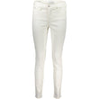 Step into sophistication with these pristine white Calvin Klein skinny jeans, designed for the modern fashion connoisseur. Crafted from a premium blend that ensures both comfort and durability, these jeans are a testament to timeless style, accented with a subtle logo that speaks volumes of your taste. Perfect for creating a polished look that transitions effortlessly from day to night.