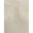 Chloé Sweater is a refined piece that combines delicacy and craftsmanship. It features a distinctive embroidered collar that adds a touch of elegance, and a mid-bust front button closure that defines the style. The openwork knit design lends a light and sophisticated texture. The 3/4 sleeves are embellished with scalloped ruffle cuffs, adding a romantic and feminine detail, while the ribbed hem completes the garment with a curated finish.