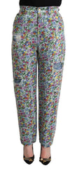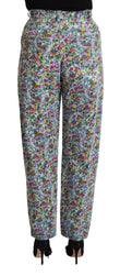 Dolce & Gabbana Blue Floral Print High Waist Denim Tapered Jeans