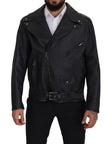 Dolce & Gabbana Black Leather Biker Coat Zipper Jacket