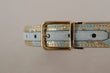 Dolce & Gabbana Blue Leather Jacquard Embossed Gold Metal Buckle Belt