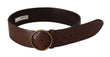 Dolce & Gabbana Brown Leather Wide Waist Logo Metal Round Buckle Belt