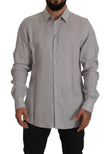Dolce & Gabbana Gray Linen Long Sleeves Formal GOLD Shirt
