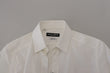 Dolce & Gabbana White Cotton Slim Fit Formal Dress GOLD Shirt