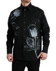 Dolce & Gabbana Black Floral Cotton Collared Dress Shirt