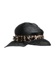 Dolce & Gabbana Black Straw Crystal Embellished Wide Brim Hat