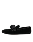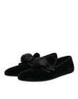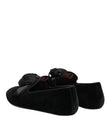 Dolce & Gabbana Black Suede Cotton Rose Slip On Loafers Shoes