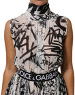 Dolce & Gabbana Black White Monogram Pleated Long Gown Dress