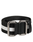 Dolce & Gabbana Black White Striped Metal Buckle Men Belt