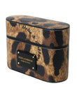 Dolce & Gabbana Brown Leopard Calf Leather Metal Logo Plaque Airpods Case