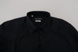 Dolce & Gabbana Black Cotton Slim Fit Formal Dress GOLD Shirt