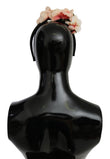 Dolce & Gabbana Pink Silk Black Floral Headband Logo Diadem