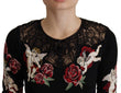 Dolce & Gabbana Black Lace Angel Roses Cardigan Sweater