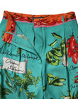 Dolce & Gabbana Green Silk Printed Straight Pants