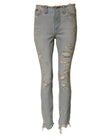 Gorgeous brand new, 100% Authentic Dolce & Gabbana skinny tattered high waist denim jeans with logo plaque.