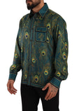 Dolce & Gabbana Peacock Feather Print Silk Pajama Mens Shirt