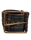 Dolce & Gabbana Plaid Fabric Logo Plate Brass Buckle Belt