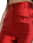 Dolce & Gabbana Red Satin Silk High Waist Wide Leg Pants
