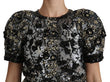 Dolce & Gabbana Black Sequined Crystal Embellished Top Blouse