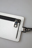 Dolce & Gabbana White Leather Lanyard Logo Card Holder Men Wallet