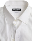 Dolce & Gabbana White Logo Cotton Men Dress GOLD Shirt