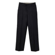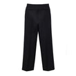 Opening with hook and covered zip, two side welt pockets, two back pockets, straight and wide leg with cropped cut.