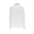 Front fastening with covered buttons, long sleeves, removable classic collar covered with decorated tulle and crystals, Korean collar. Regular fit.