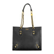 Make a bold statement with this Guess Jeans classic handbag, the epitome of chic sophistication. Perfectly sized to carry all your essentials, it features a sleek black hue with contrasting details that add an edgy touch to its elegance. Dual chain shoulder handles provide versatile carrying options, while the zip closure secures your belongings. Stay organized on the go with two external pockets for quick access items, an internal pocket, and dedicated spaces for documents. It’s not just an accessory; it’s a reflection of style and functionality.