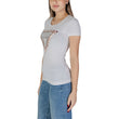 by GuessThe Guess SS CN CHEETA LOGO W5RI22 J1314 women’s short-sleeved t-shirt is an iconic piece that combines style and comfort. Made from soft stretch jersey, consisting of 95% cotton and 5% elastane/lycra, this t-shirt offers a slim fit that enhances the silhouette. The front features the classic Guess logo inside the signature triangle, enriched with cheetah-effect animal print details for a glamorous and distinctive touch. With its crew neckline and short sleeves, it’s perfect for casual outfits or paired with more refined pieces. Ideal for spring and summer, this t-shirt is a must-have for every fashion-forward woman’s wardrobe.
