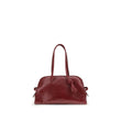 The Bowling Bag by Jacquemus in glossy leather with a vintage finish is a refined and contemporary accessory. The double-zip closure and coordinated leather tubular handles, enhanced by an elegant knotted detail, highlight its unique design. The embossed logo completes the silhouette, while the interior pocket adds functionality without sacrificing style.