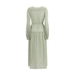 Kristina Ti’s Silk long Dress is a fluid and feminine garment enhanced by a delicate foliage print. The mid-bust button closure gives a discreet and elegant touch, while the elasticized waist enhances the silhouette naturally.