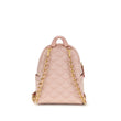 The Stark Lauretos Backpack by MCM combines functionality with iconic style. It features adjustable shoulder straps and a leather top handle, with the MCM logo prominently featured on the front. It features a front zippered compartment and a front zippered pocket for convenient organization. The lining is made of synthetic nappa leather, while the chain shoulder straps are removable, offering versatility of use.