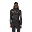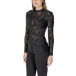 The Morgan De Toi women’s long-sleeve t-shirt, model 251-TEVORA, is an elegant and contemporary piece, perfect for adding a sophisticated touch to your wardrobe. Made from 93% polyester and 7% elastane/lycra, it offers a comfortable, slightly stretchy fit that enhances the silhouette. The semi-transparent fabric features refined floral embroidery, creating a trendy sheer effect suitable for both formal occasions and casual chic looks. The slightly high neck and long sleeves complete the feminine and versatile design, making it easy to pair with trousers or skirts for unique outfits.