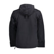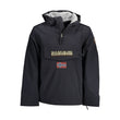 long-sleeved rainforest jacket, hood, 1 central pocket with zip and felt closure, side zip, application, logo, 30% recycled materials