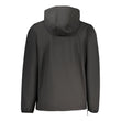 LONG-SLEEVED SOFT SHELL JACKET WITH HOOD, 1 CENTRAL POCKET WITH ZIP AND VELCRO CLOSURE, HALF ZIP, SIDE ZIP, APPLIQUE, LOGO