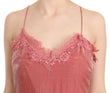 PINKO Pink Lace Spaghetti Strap Side Slit Shift Midi Dress