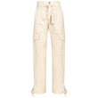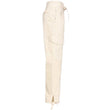 Indulge in the epitome of chic comfort with PINKO’s Coperto Trousers. Tailored to perfection, these ivory white pants boast a sophisticated six-pocket design, seamlessly blending functionality with fashion. Crafted from a luxurious blend of cotton and elastane, they ensure both a flattering fit and effortless movement. The unique ribbon drawstrings at the ankle and waist add a playful yet elegant touch to these versatile trousers. Elevate your wardrobe with this must-have piece from PINKO’s exquisite collection.