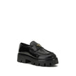 Brushed leather Monolith Loafers by Prada reinterpret a classic with a bold, contemporary twist. Featuring a leather horsebit upper with metallic detail, they have a burlotto bowl and an all-leather lining. The foam sole with block tread gives them lightness, volume and a bold attitude, perfect for completing metropolitan looks with personality.