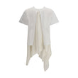 The T-shirt by Sacai transforms an essential garment with unexpected, deconstructed details. Crafted from Cotton and Polyester Jersey, it features a classic crewneck and an opening at the back with a triangular Polyester panel. The asymmetrical hemline is enriched by cascading ruffles longer at the back, while a chest pocket introduces a functional touch. A piece where everyday simplicity meets sartorial experimentation.
