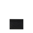 Calfskin Card Holder by Saint Laurent, quilted matelassé design, front plaque with iconic three-dimensional YSL logo, card slots on front and back, bill compartment on top.