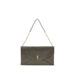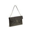 The Cassandre XXL Shoulder Bag with Chain by Saint Laurent is an extra-large clutch made of soft lambskin leather, embellished with the iconic metal Cassandre logo. Equipped with a stowable cable chain strap, it can be worn on the shoulder or carried by hand, elegantly adapting to different occasions. The snap-button closure ensures practicality, while the interior is completed with a zippered pocket to keep essentials tidy at all times.
