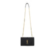 Calfskin Satchel Small Shoulder Bag by Saint Laurent, magnetic closure, monogram logo plaque, chain shoulder strap, matellassè texture, back flat pocket, internal flat pocket.